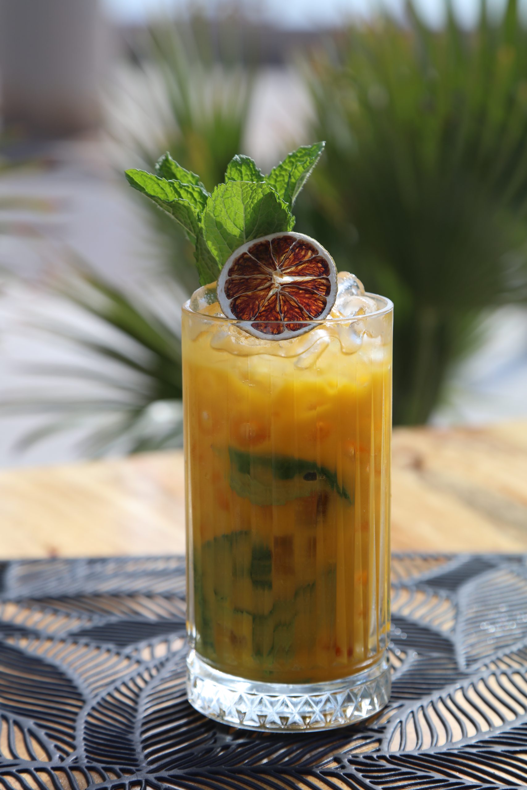 A tropical spin on the classic Cuban cocktail. This Mango Mojito mixes fresh mint leaves, juicy mango purée, lime juice, and white rum over crushed ice, topped with soda water and a slice of dried lime. Refreshing, fruity, and full of Caribbean flair — made to be sipped under the sun.
