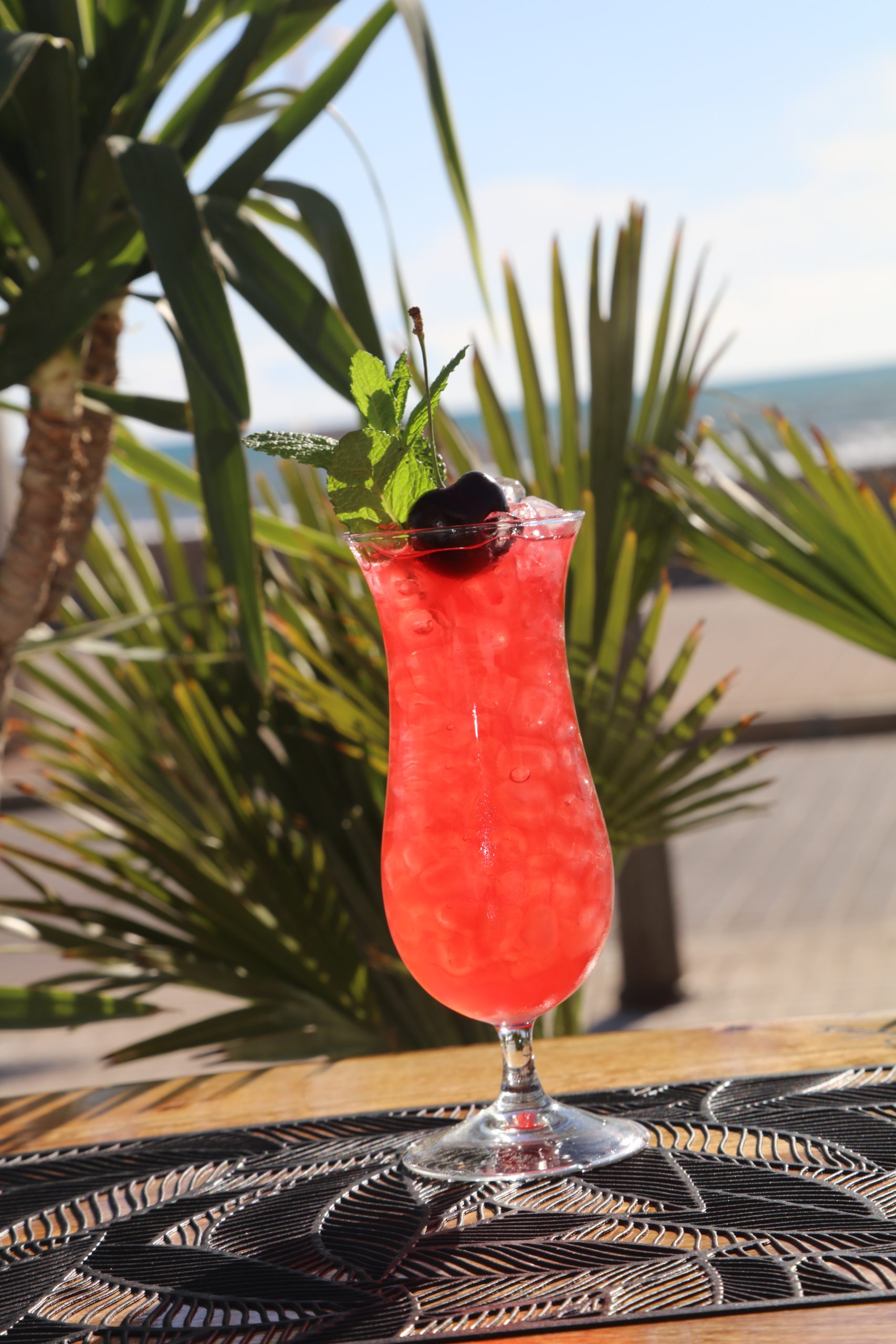 Fruity, flirty, and made for golden hour. The iconic Sex on the Beach cocktail mixes vodka, peach liqueur, orange juice, and cranberry juice into a vibrant drink that’s as refreshing as it is eye-catching. Topped with a cherry and mint for that picture-perfect finish.
